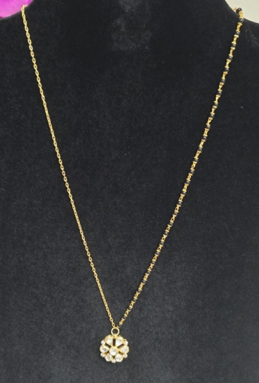 NEW Beautiful 92.5 hallmarked silver black beads chain in trendy half and half concept. It has cute moissonite flower pendant and the length is approximately 18 inch. Refer the last pic for reference.